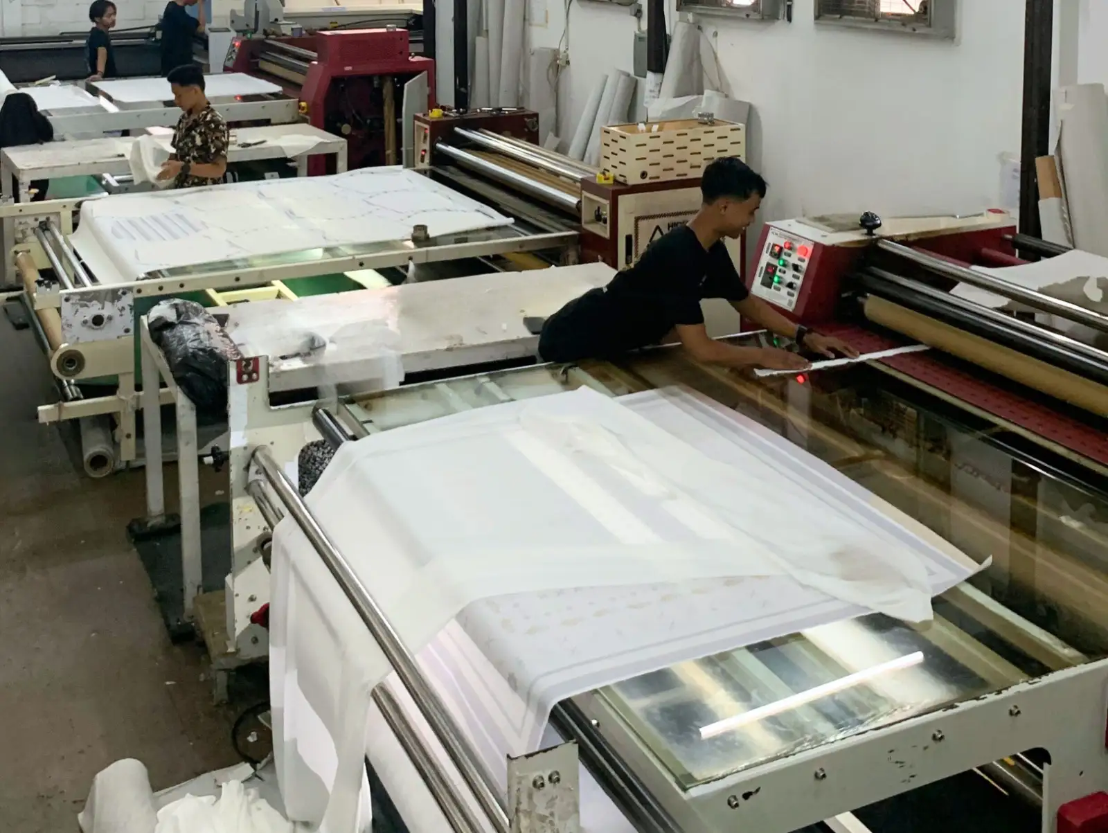 Dengan 3 mesin HEAT PRESS ROLL berkualitas industri, Ghoin.co mampu mentransfer desain ke kain secara presisi menggunakan suhu tinggi. Didukung kecepatan hingga 200 meter per jam proses produksi jadi lebih cepat dan efisien —ideal untuk memenuhi permintaan massal tanpa mengorbankan kualitas.
